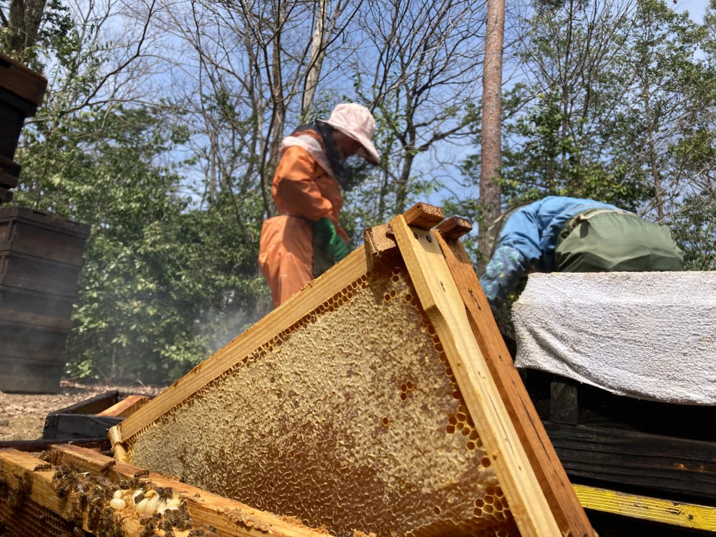 濃くしすぎて巣が重たくなり、持ち上がらない。包丁でさえも固すぎて蜜ぶたが切れない。遠心分離機で回しても出ないから、何回も何回も回す。水分量の関係で、早朝から午前中までに仕事を終わらせる。など、他では考えられない苦労がそこにはあります。